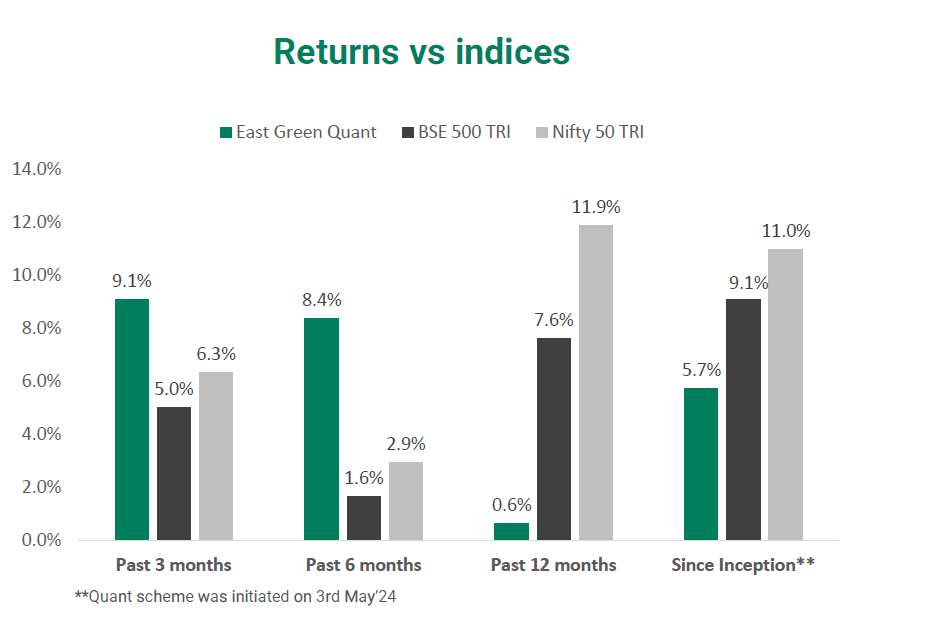 East Green’s Quant strategy was initiated on 3rd May 2024. At the end of December 2025, return for the strategy since inception was 5.7% (annualised, post fee and expenses).